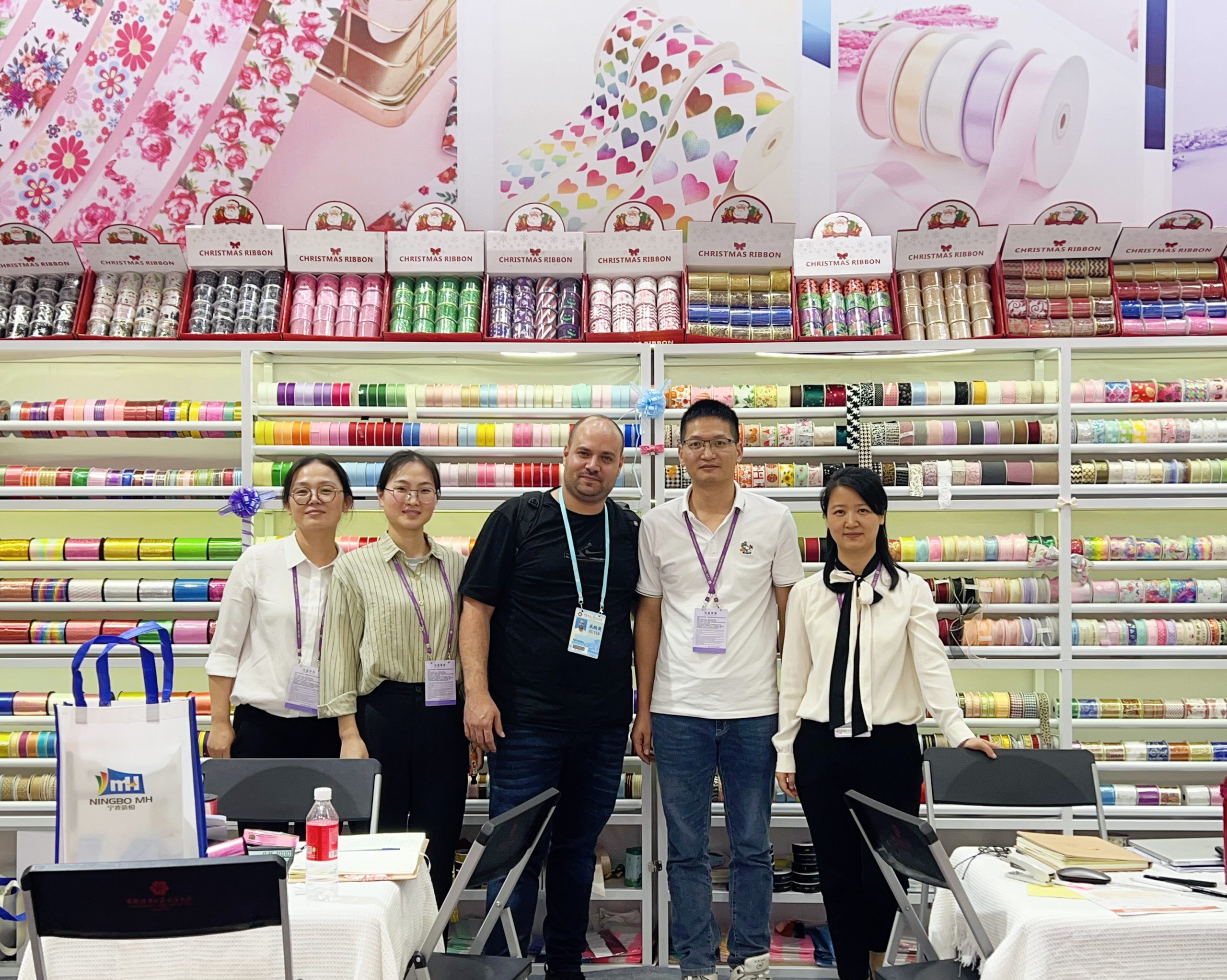 本屆廣交會上,寧波交易團派出“超強陣容”,共有展位3853個,占全國50個交易團第五位,出口成交額13.75億美元,比第133屆增長15.2%,全國占比超過6%。在當前全球貿易持續疲軟、外貿承壓前行的背景下,本屆廣交會作為規模更大、質量更優、創新更強、成效更好的“中國第一展”,無疑是一劑“強心針”。國貿攜帶眾多拳頭產品和全新產品參加展會,并吸取上次展會的經驗,采用二維碼掃碼報價的方式實現快速報價,提升了服務的品質和效率,反響頗佳。參展期間,二期展位上的帶類新產品吸引了眾多新老客戶的眼球,其中新款絲帶、須邊魚尾、手撕帶等受到了一波客人的追捧;三期展位上的襯布、帶類、線類產品則備受青睞,不少客戶有較強的下單意向,并有客人表示展會結束后會來寧波參觀我們的工廠,進行進一步洽談。