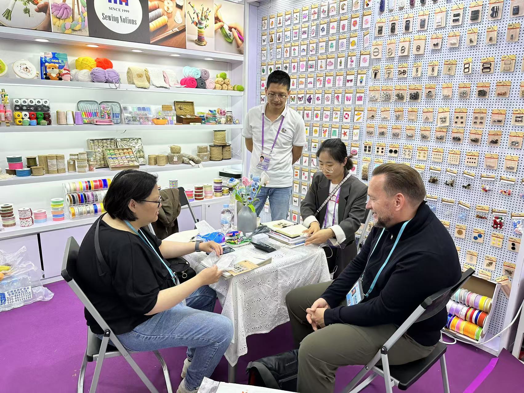 在禮品及贈(zèng)品展區(qū),公司主推的絲帶類產(chǎn)品和小包裝產(chǎn)品備受青睞,吸引了眾多國(guó)際采購(gòu)商的關(guān)注。業(yè)務(wù)員提到:“很多客戶反饋我們的大部分產(chǎn)品的款式設(shè)計(jì)走在行業(yè)前沿,有些產(chǎn)品的款式和質(zhì)量甚至在整個(gè)展館是獨(dú)一無(wú)二的。不同國(guó)家的客戶絡(luò)繹不絕,還有老客戶因公司良好的市場(chǎng)口碑,在現(xiàn)場(chǎng)表達(dá)了強(qiáng)烈合作意愿。”