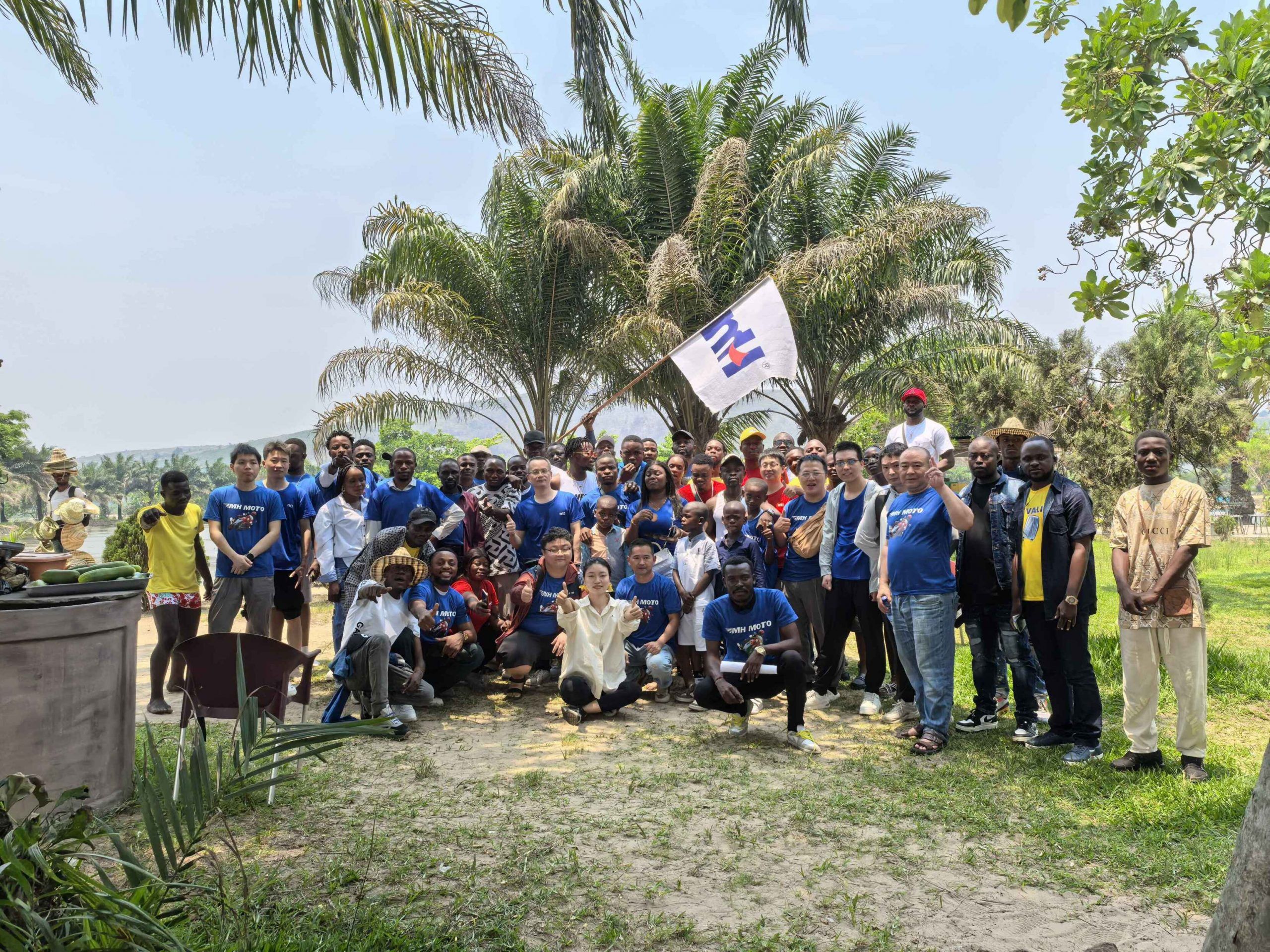 我們選擇在金沙薩一處河邊沙灘度假村開展活動。陽光明媚,微風徐徐,營造了輕松愉快的氛圍。活動的第一環節是集體合影,在MH的旗幟下,大家紛紛擺出各種有趣的姿勢,記錄下這個美好的時刻。歡聲笑語不斷,彼此之間的距離在這一刻被拉近。