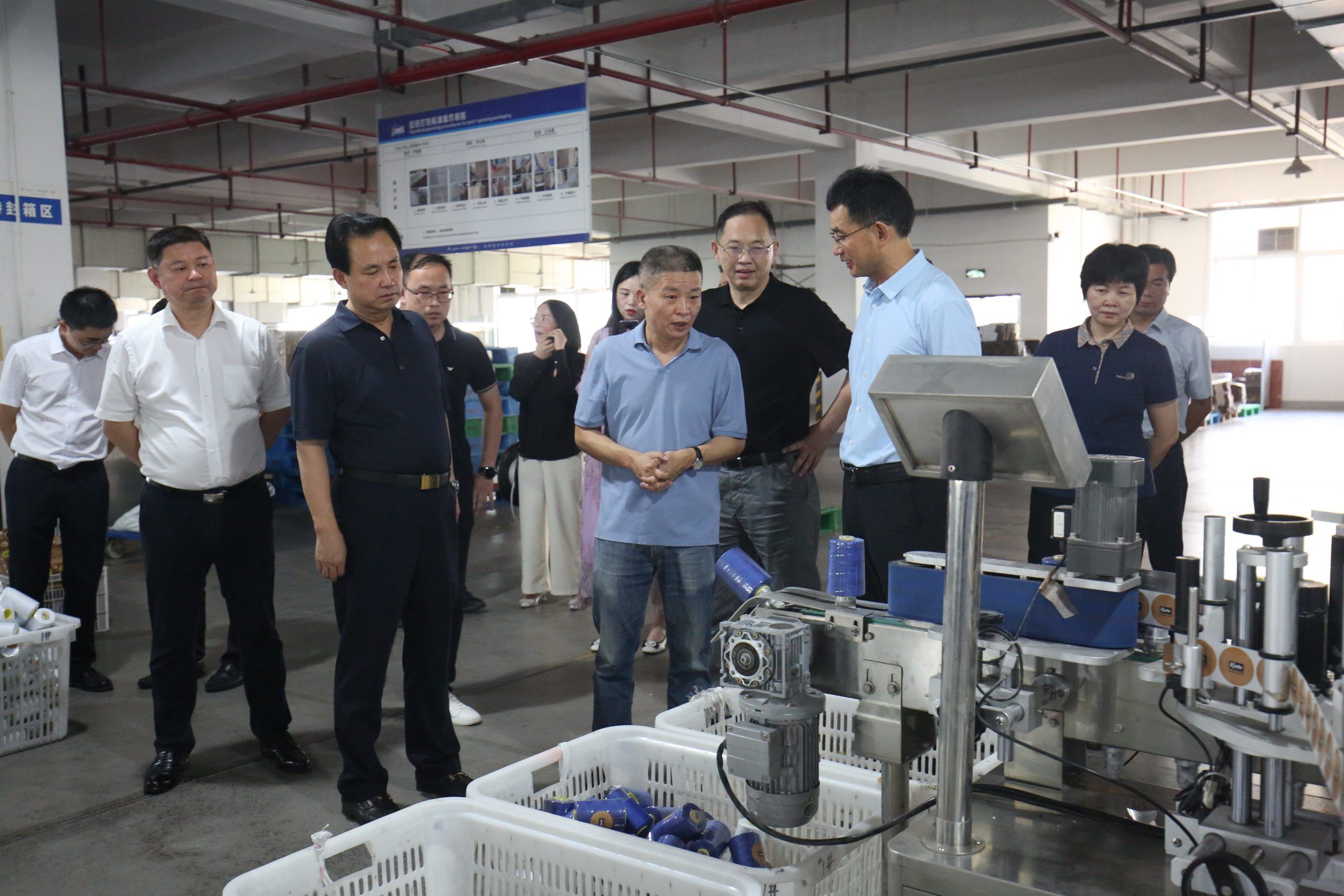 調研中,李總介紹了湖南萌恒目前的生產經營情況、生產產品、發展歷程及目前行業所處的地位,就公司未來的發展規劃及在建項目智能立庫及花邊產業轉移項目同步做了詳細介紹,隨后共同參觀了滌綸線染色和后紡生產車間現場,楊廳長對目前萌恒所處的行業地位給予了高度肯定。