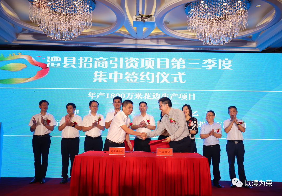 9月8日,澧縣招商引資項目第三季度集中簽約儀式在澧縣瑞高酒店舉行,澧縣縣委書記王兆銘、縣長王啟武等主要縣委、縣政府領導出席簽約儀式。簽約儀式由澧縣常務副縣長李陽主持,副縣長楊波介紹了簽約項目情況,縣高新區和縣自然資源局進行了表態發言。