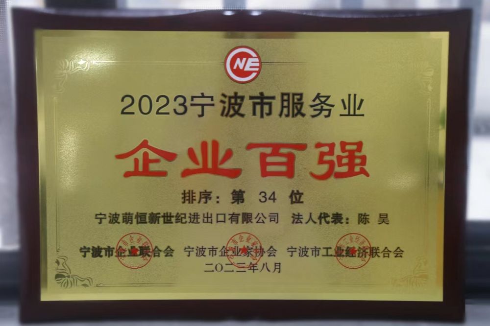 2023年9月6日喜報 | 萌恒新世紀蟬聯寧波服務業百強企業